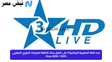• لا تفوت الفرصة.. مباشر وحصري لمباريات الدوري المغربي 2025 / 2026 مجانًا على قناة المغربية الرياضية 3 عبر النايل سات