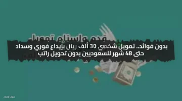 بدون فوائد.. تمويل شخصي 30 ألف ريال بإيداع فوري وسداد حتى 48 شهر للسعوديين بدون تحويل راتب