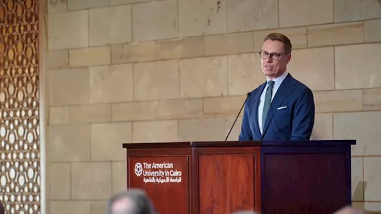 استقبلت الجامعة الأمريكية بالقاهرة الرئيس الفنلندي ألكسندر ستوب في زيارة رفيعة المستوى، حيث ألقى محاضرة نقاشية بعنوان “التحولات العالمية وتغير موازين القوى”. شهد اللقاء حواراً مفتوحاً مع طلاب من عدة…